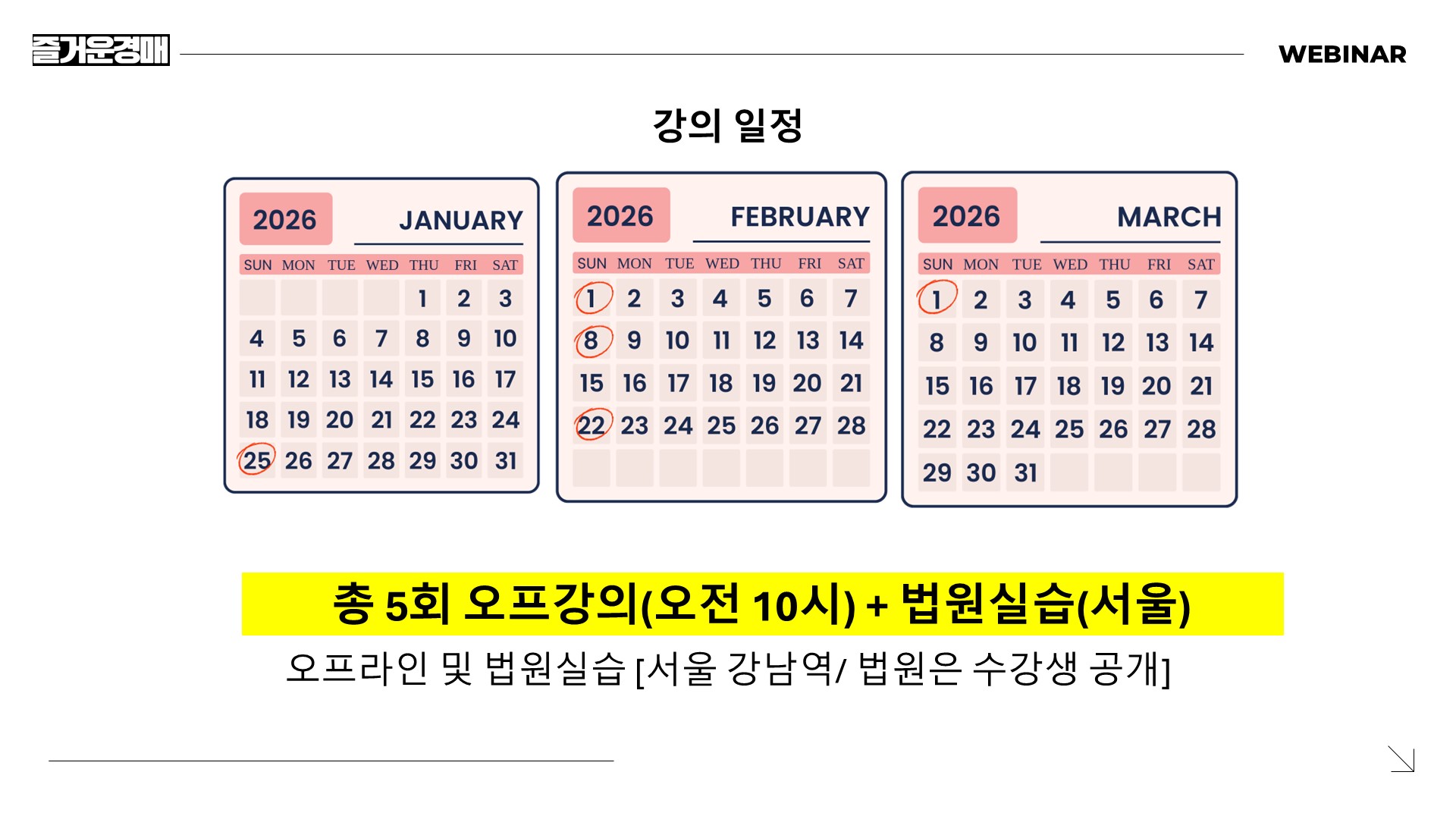 1월 25일부터 매주 일요일 10시~1시 (5주간 오프라인 강의)